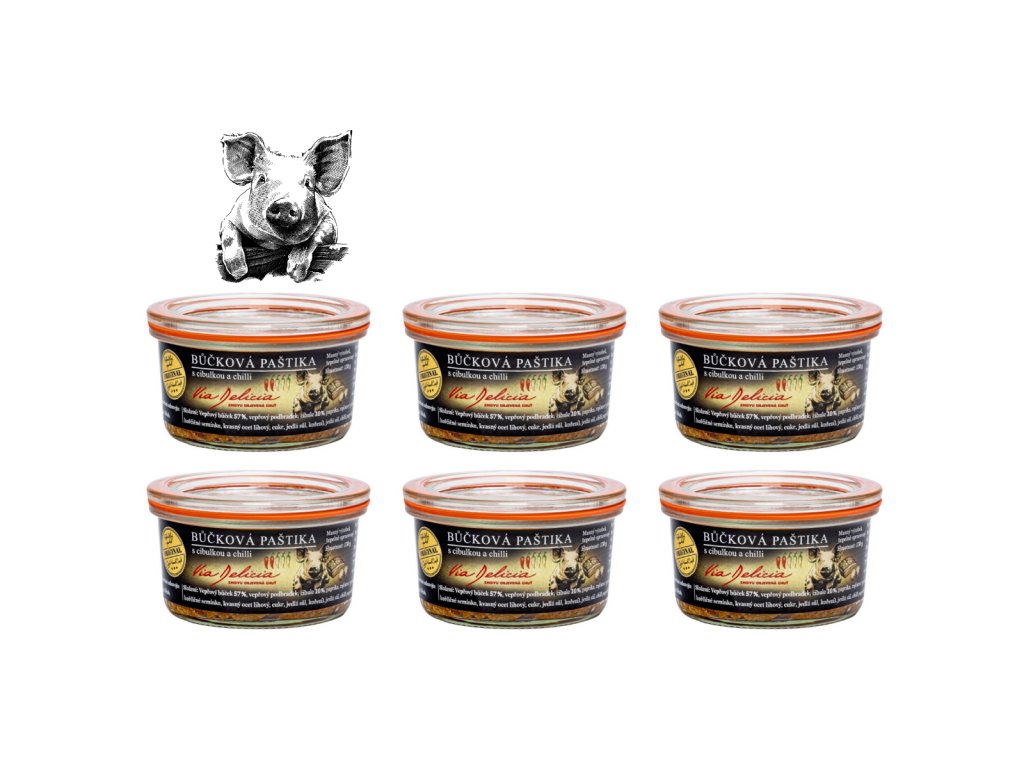 Bůčková paštika s chilli, 6ks - výhodné balení 6× Bůčková paštika s cibulkou a chilli (130 g)