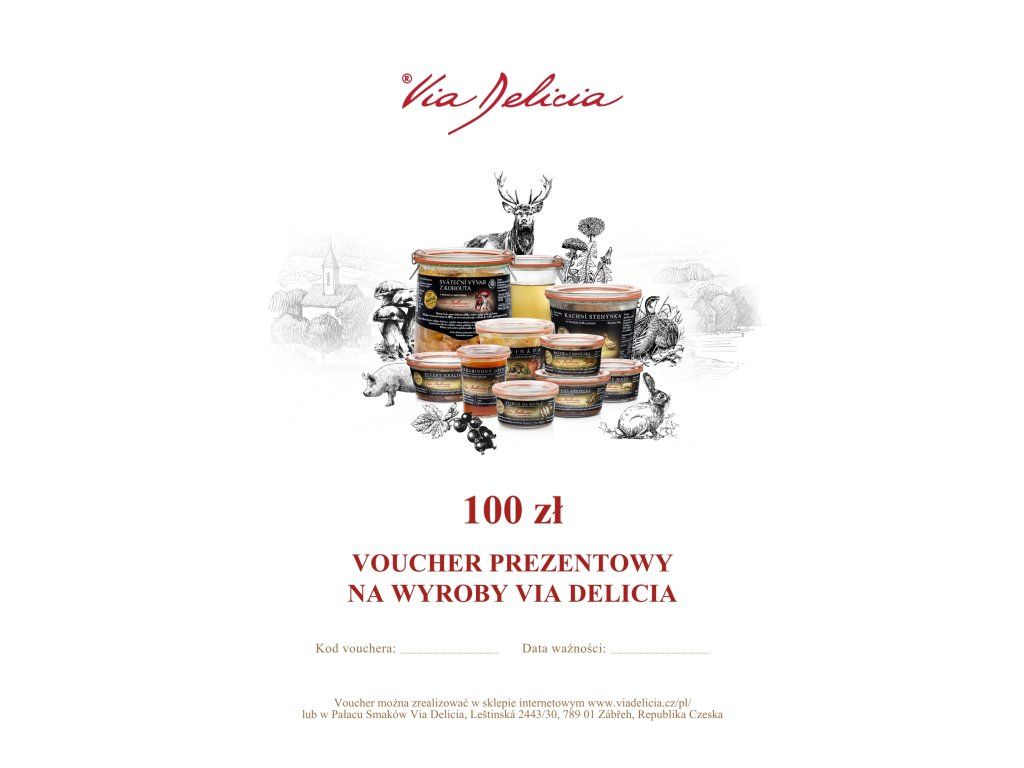 Dárkový poukaz v hodnotě 100 zł je ideálním řešením, když chcete potěšit, ale nechat výběr na obdarovaném. V e-shopu Via Delicia si může vybrat z nabídky kvalitních delikates – džemů, sirupů, paštik, dárkových balíčků i dalších gurmánských produktů.