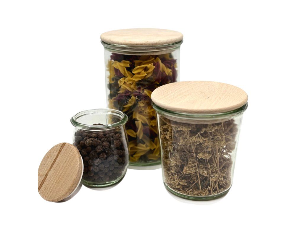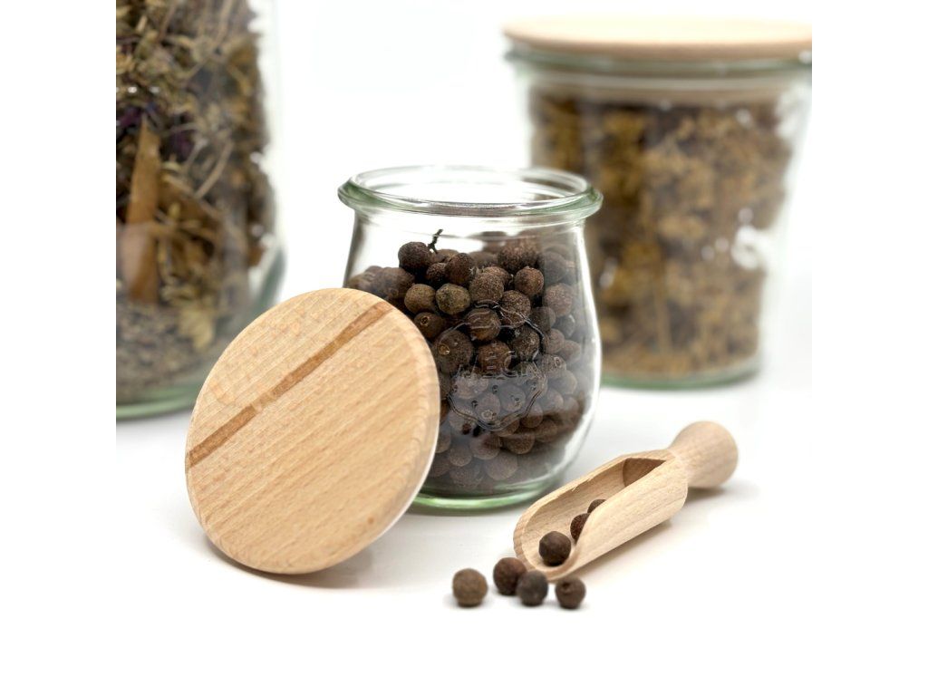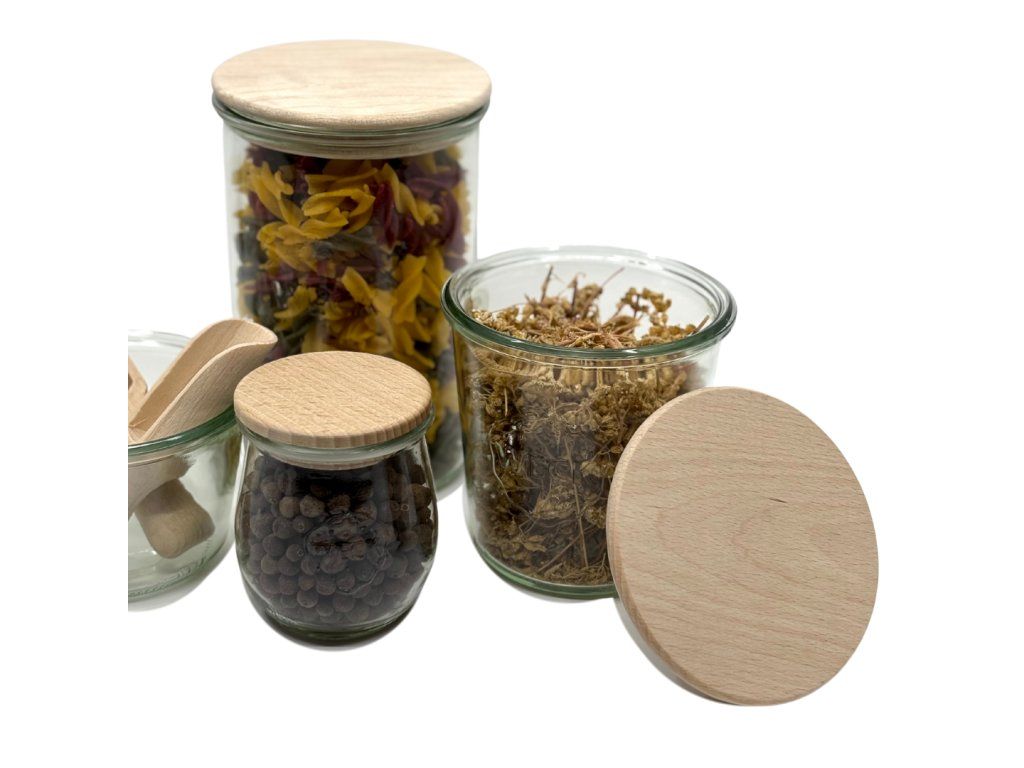 Drevené viečka nielenže tesne priliehajú k pohárom WECK, ale zároveň dodávajú rustikálny a prírodný vzhľad, ktorý sa hodí do každej kuchyne či špajze. Sú ľahko umývateľné a pri správnej starostlivosti vám poslúžia dlhý čas.
