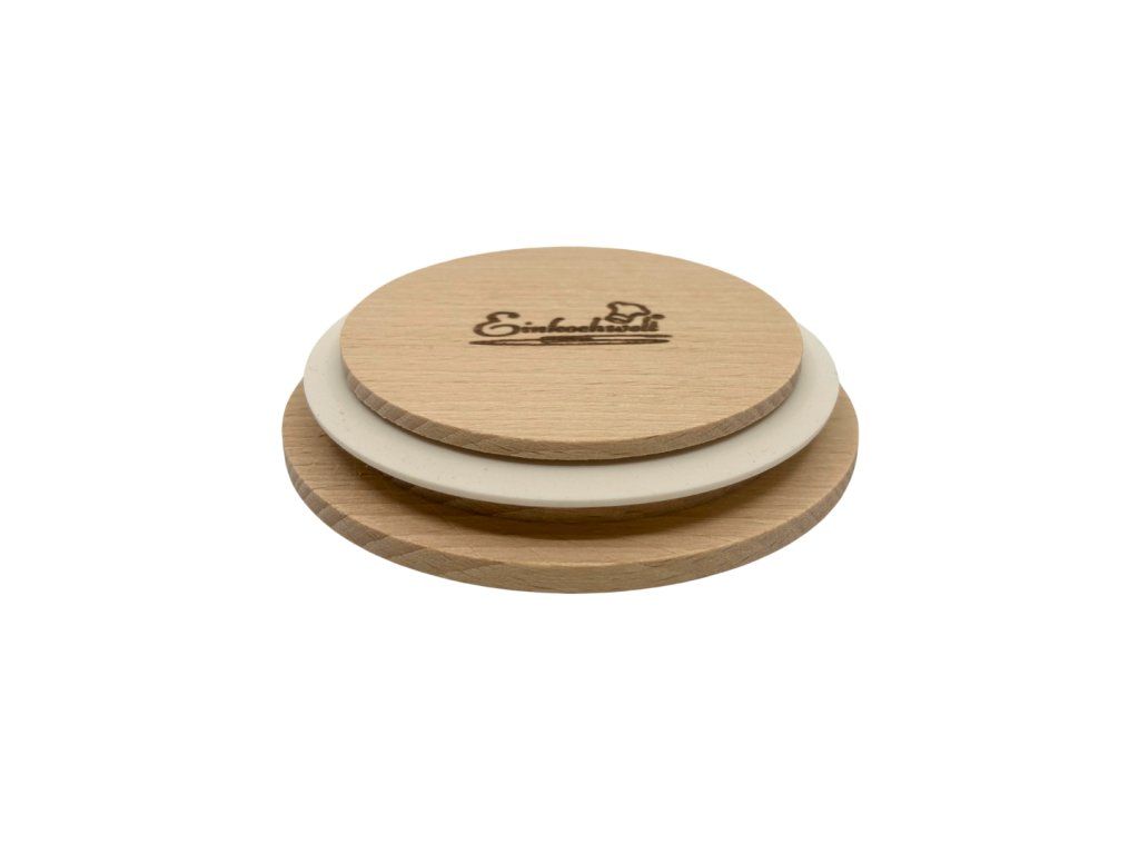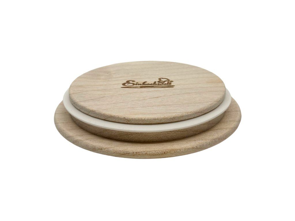 Každé viečko je precízne vyrobené z kvalitného bukového dreva, ktoré je známe svojou pevnosťou a odolnosťou. Povrch viečok je hladko opracovaný a ošetrený prírodným olejom, čo zaisťuje ich dlhú životnosť a bezpečnosť pri kontakte s potravinami.
