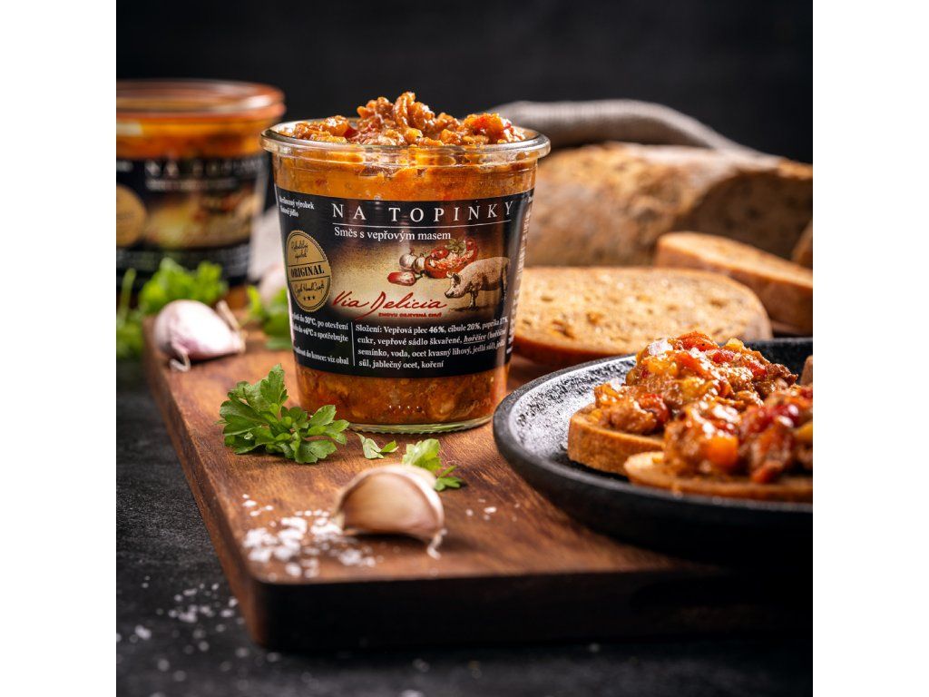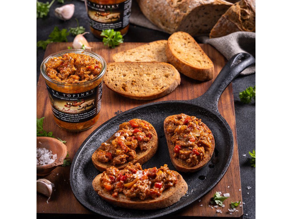 Zmes obsahuje 46 % bravčovej plece, 20 % cibule a 17 % papriky, čo zaručuje bohatú a vyváženú chuť. Dopĺňa ju horčica a korenie, ktoré jej dodávajú špecifickú pikantnosť. Hoci je ideálna na hrianky, dá sa využiť aj do ďalších jedál, ako sú omáčky, burritá alebo len tak k pečivu. Zloženie je čisto prírodné, bez konzervantov. Tento produkt je vyrobený s láskou k tradičným receptom a kvalitným surovinám.
