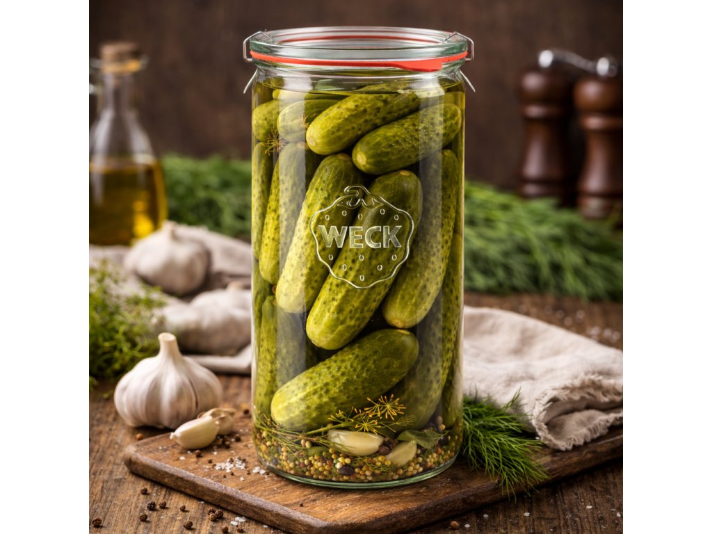 Sklenice chřestovka vysoká 1590 ml od značky WECK je ideální pro zavařování chřestu, nakládání hermelínu, kvašáky (kvašené okurky) nebo další druhy kvašené zeleniny. Díky průměru hrdla 100 mm je plnění a čištění sklenice jednoduché a pohodlné. Každá sklenice je dodávána se skleněným víčkem, těsnící gumičkou a dvěma nerezovými klipsy, což zajišťuje bezpečné a spolehlivé uzavření. Objem sklenice je 1590 ml, přičemž pojme přibližně 1480 ml tekutiny. Sklenice WECK jsou známé svou vysokou kvalitou a dlouhou tradicí, což je činí oblíbenou volbou pro domácí i profesionální zavařování ovoce a zeleniny.