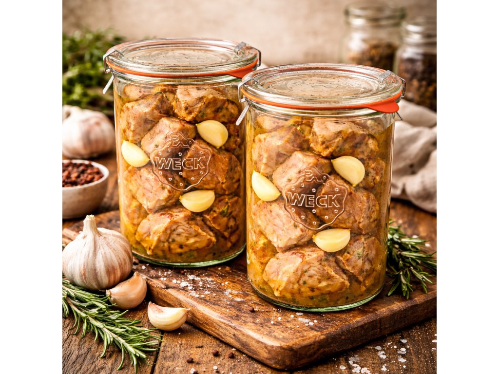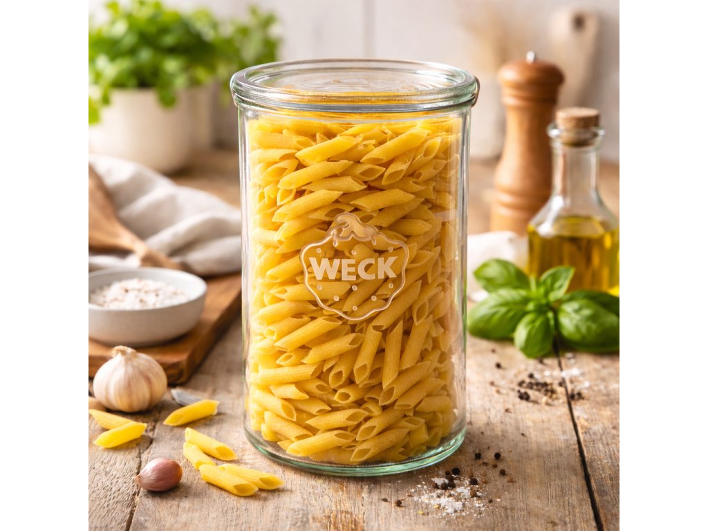 Sklenice masovka vysoká 1000 ml od značky WECK je ideální volbou pro zavařování paštik, masových konzerv, guláše či k přípravě domácího aspiku. Vhodné i pro převoz polévky i pro větší rodinu. Díky širokému hrdlu o průměru 100 mm je plnění i vylévání obsahu snadné a pohodlné. Každá sklenice je dodávána se skleněným víčkem, těsnící gumičkou a dvěma nerezovými klipsy, což zajišťuje bezpečné a spolehlivé uzavření. Objem sklenice je 1000 ml, což odpovídá přibližně 900 ml tekutiny. Sklenice WECK jsou známé svou vysokou kvalitou a dlouhou tradicí, což je činí oblíbenou volbou pro domácí i profesionální zavařování či dokonce kvašení.
