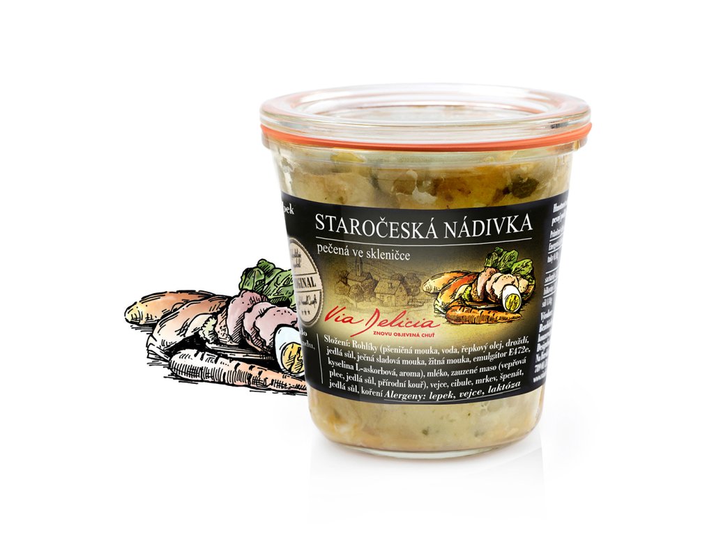 Složení: rohlíky, mléko, zauzené vepřové maso, vejce, cibule, mrkev, špenát, jedlá sůl, koření